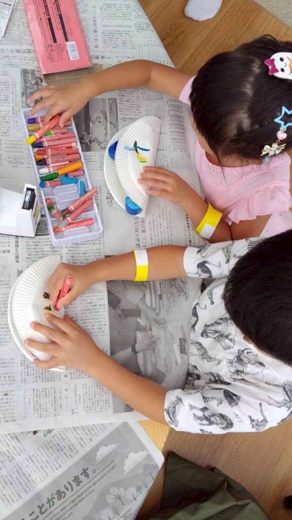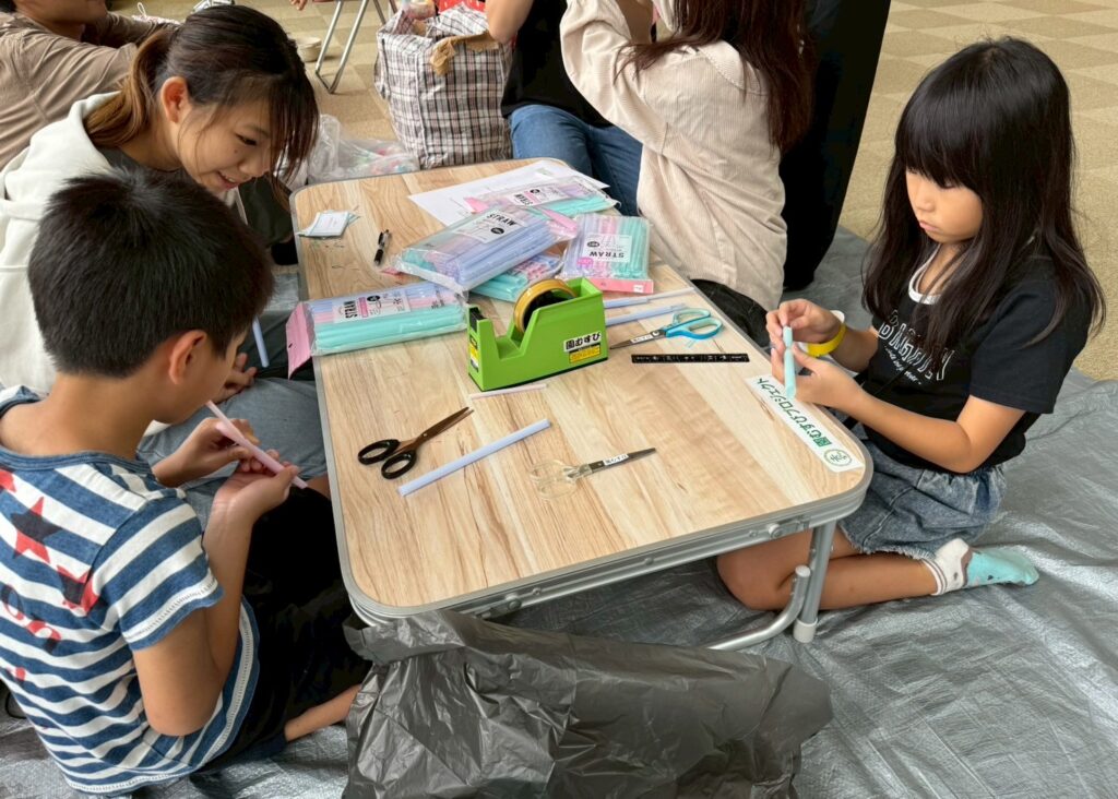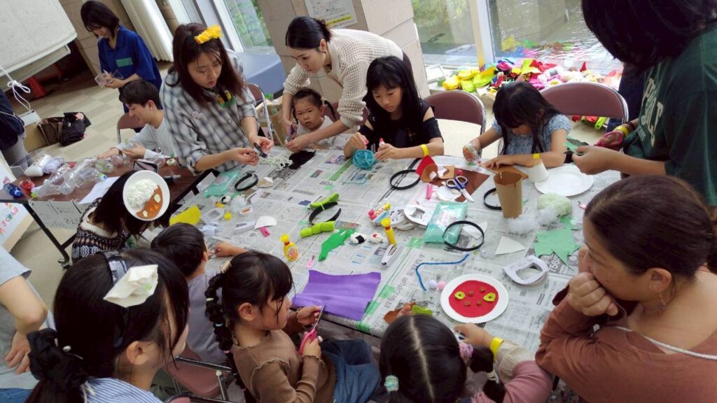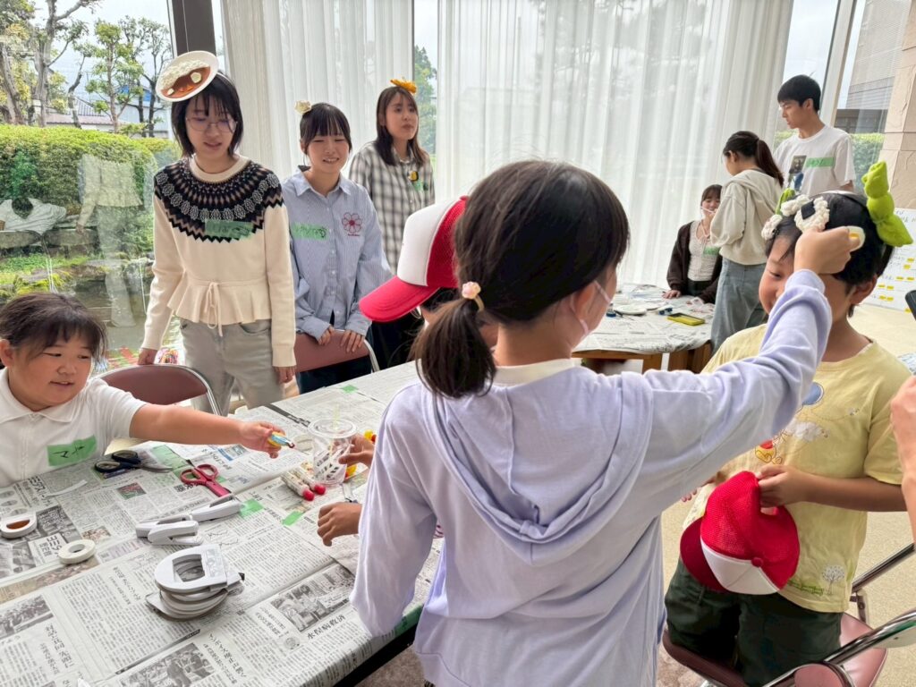 参加者のみなさんは、お兄さん、お姉さんと楽器やヘアピン作りをしたあと