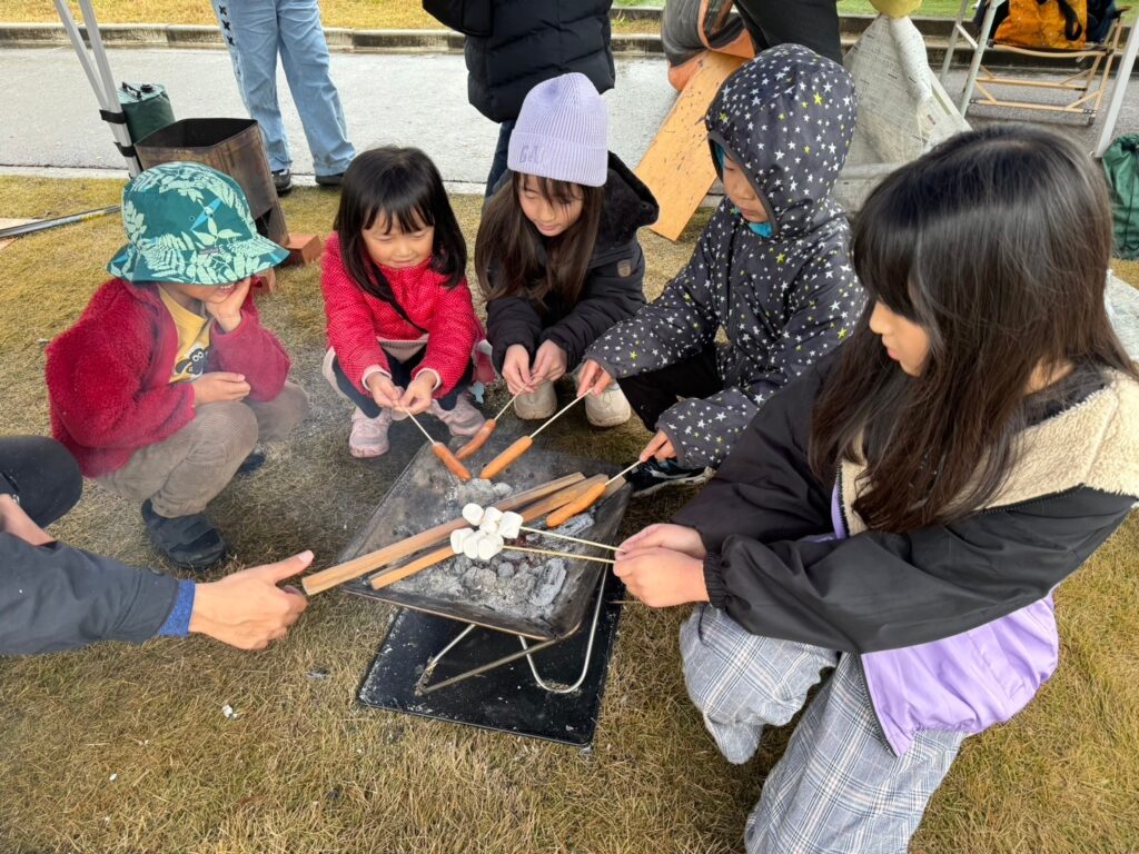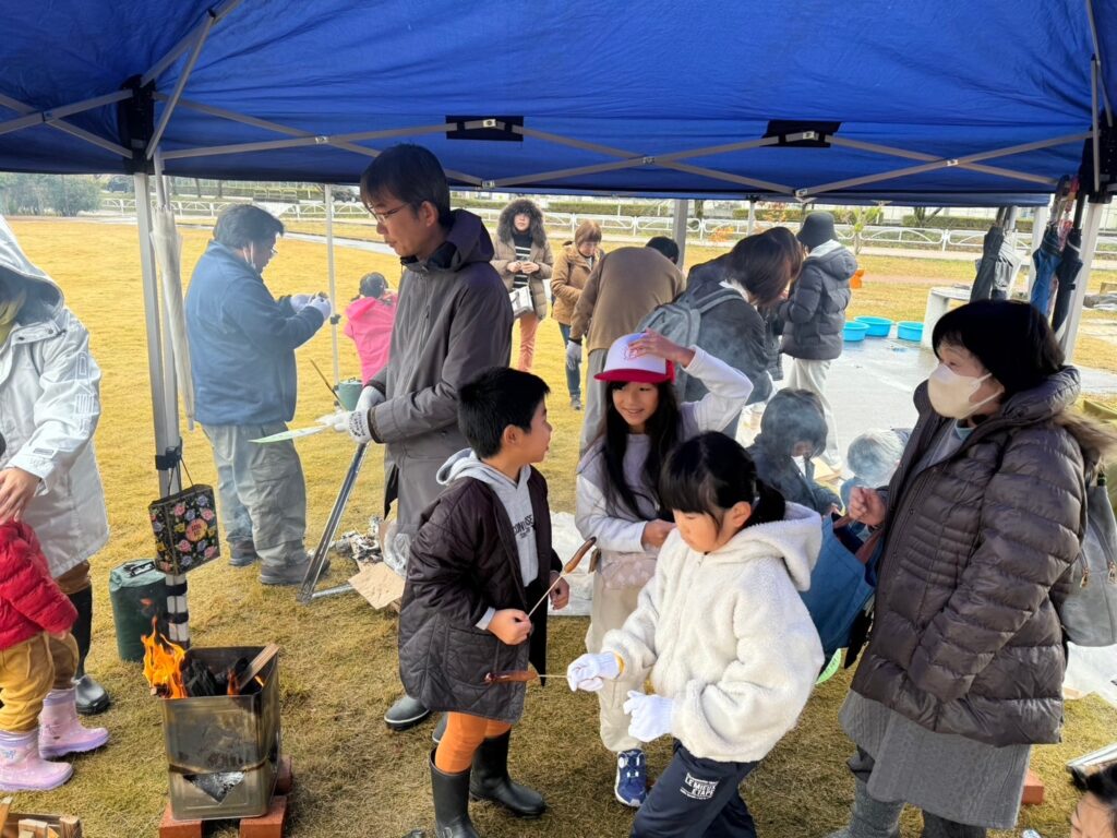 協力して火おこしをして、舟橋村産のおいしいさつまいもを焼きましょう✨