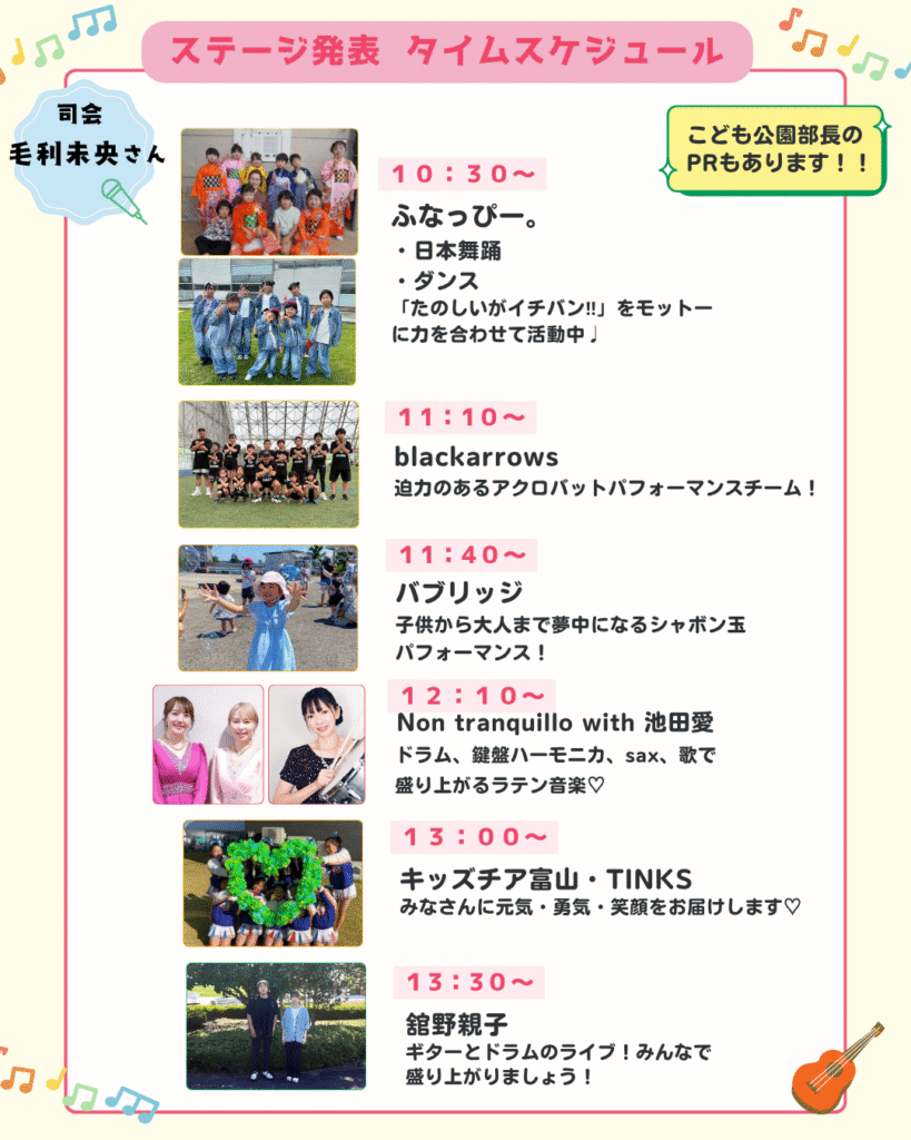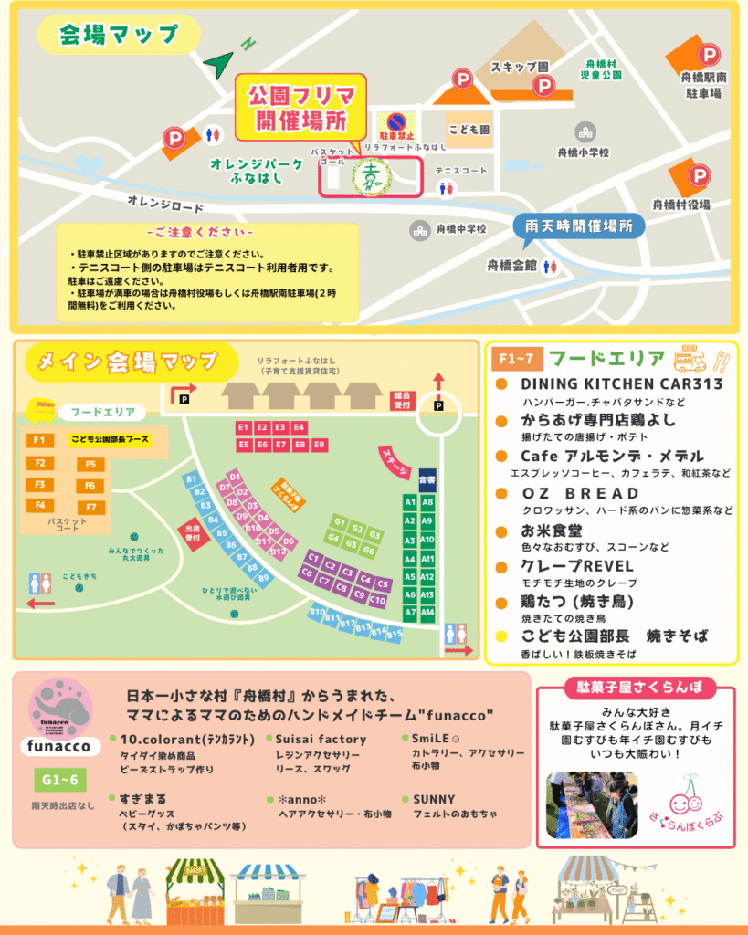 ☆駐車場は公園駐車場他、YMCAこども園前・すきっぷ園前満車の場合は舟橋村役場・舟橋駅南駐車場(2時間無料)をご利用ください。