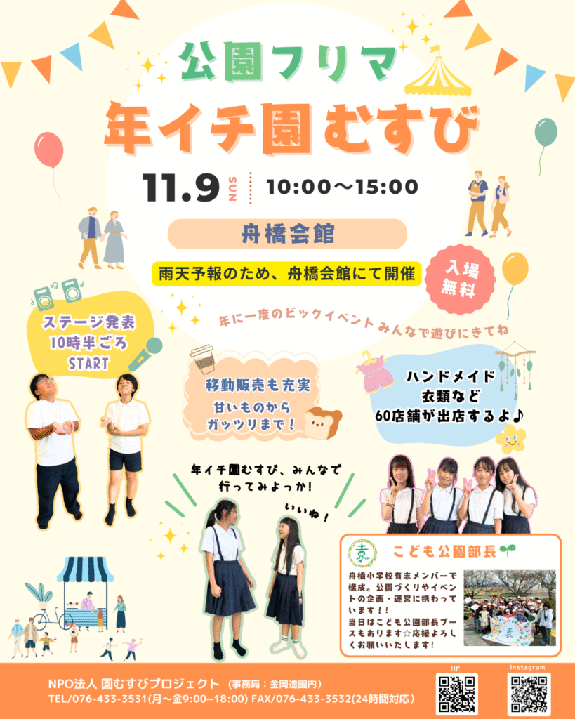 📢【雨天予報のため舟橋会館にて開催】年イチ園むすび「公園フリマ」🎪